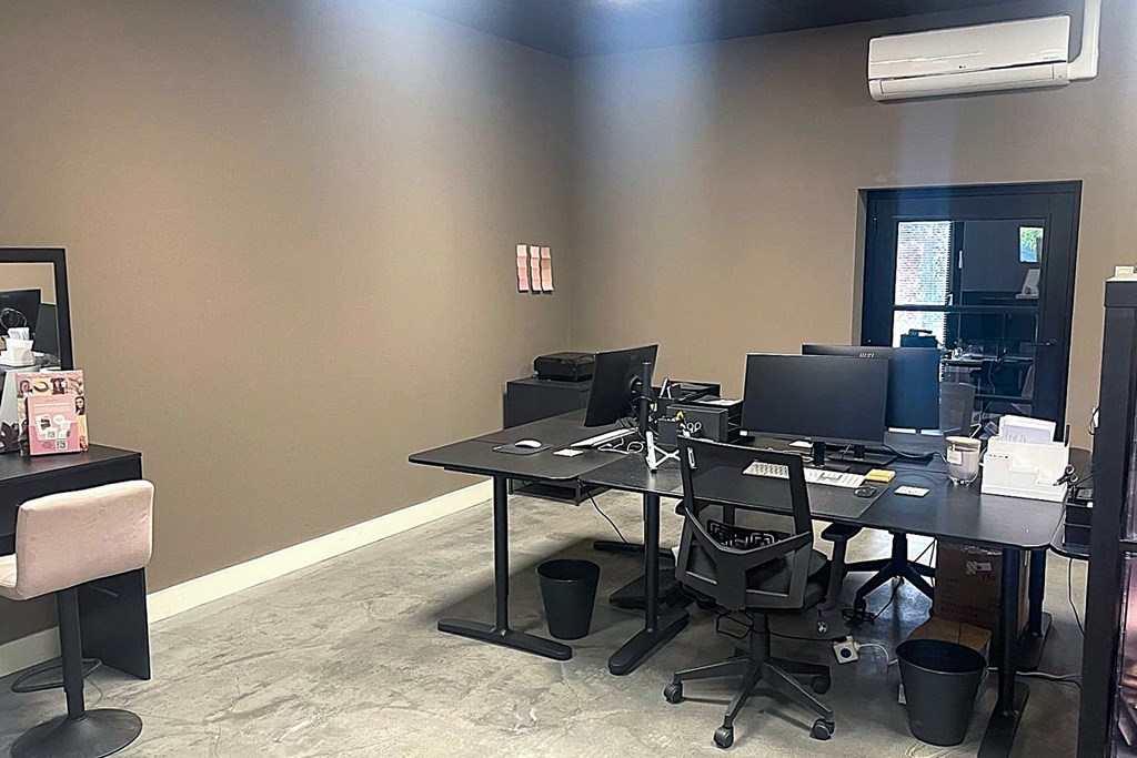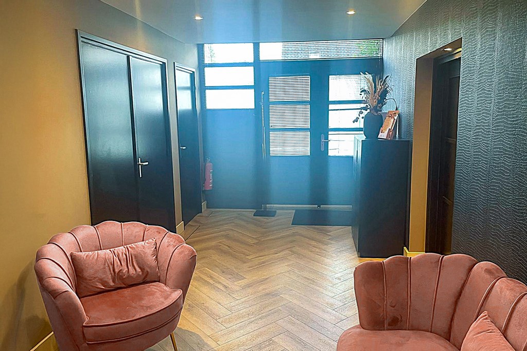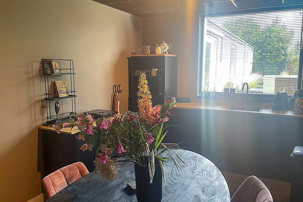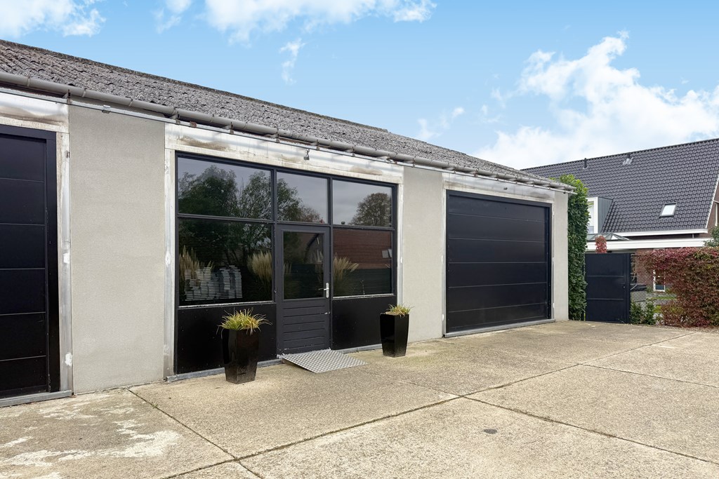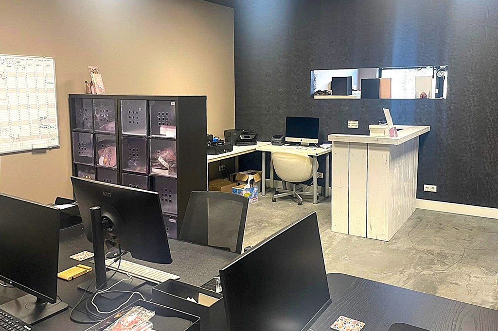 Royale kantoor-/praktijkruimte (71m²) met een betonlookvloer en airconditioning, (directie)kantoor/praktijkruimte (29 m²) met een fraaie PVC vloer in visgraat en airconditioning, modern zwevend toilet, kantine met een keukenopstelling v.v. een koelkast en vaatwasser en de loods (71 m²) met een sectionaalpoort.