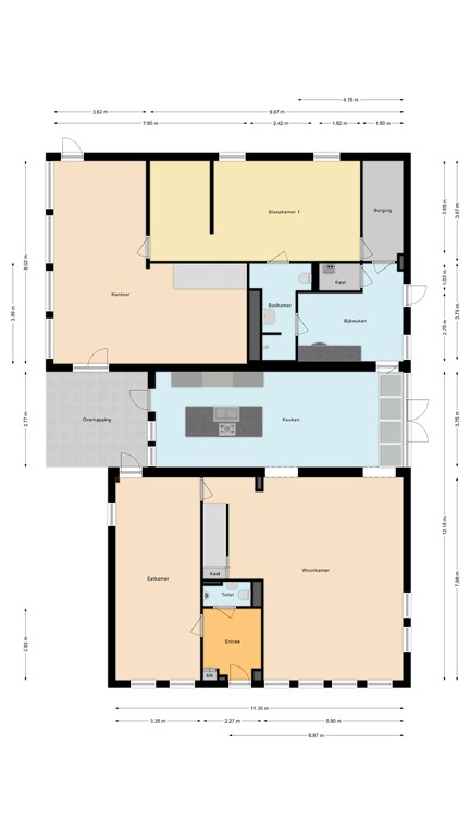 Het uit 2016 daterende bedrijfsgedeelte beschikt over een goed isolatiepakket, complete afwerking en is vanwege de goede indeling geschikt voor diverse doeleinden.