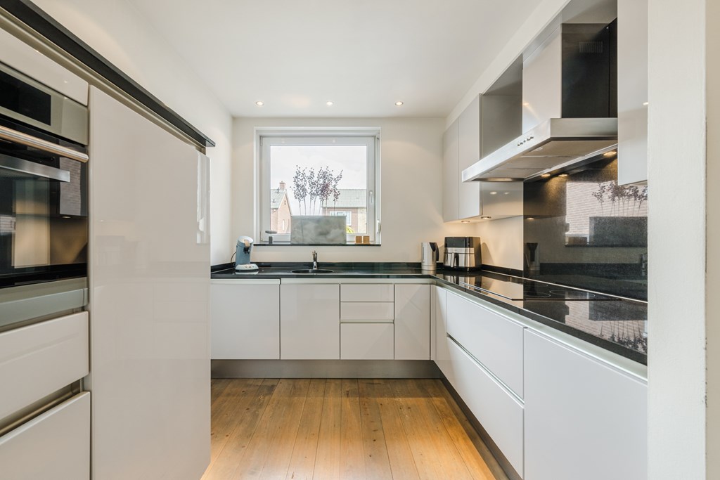 Bij binnenkomst valt direct de moderne en tijdloze inrichting op. De woning is volledig instapklaar en afgewerkt met hoogwaardige materialen. De fraaie, verscholen keuken (8 m²) is uitgerust met alle denkbare inbouwapparatuur en biedt veel rust en ruimte zonder direct in het zicht te liggen. Deze slimme indeling zorgt voor een open, ruimtelijk gevoel in de woonkamer (36 m²), terwijl de keuken toch subtiel en stijlvol is geïntegreerd in het geheel. Een mooie bijkeuken (6 m²) met aansluiting voor het witgoed en een fijne berging (9 m²) ontbreken ook niet.