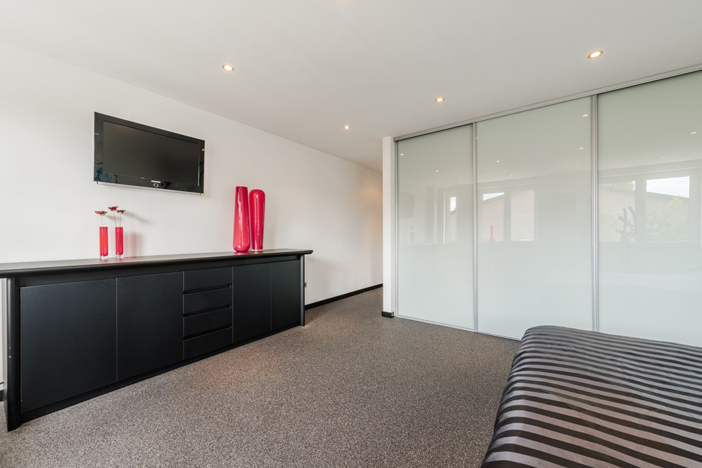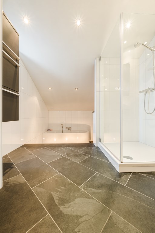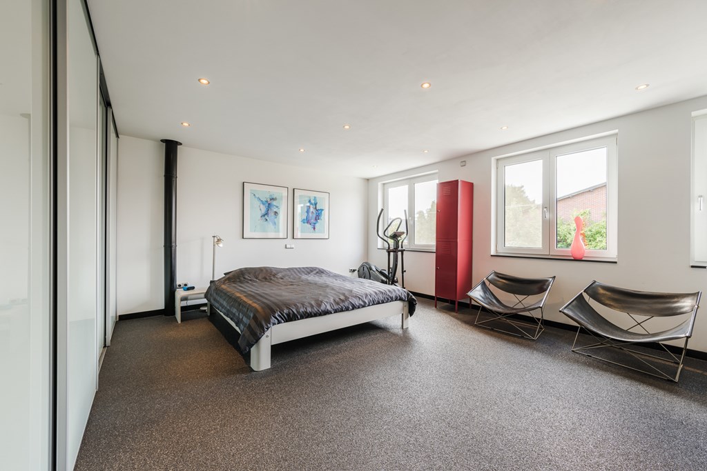 De luxe badkamer (12 m²) beschikt o.a. over een ligbad, een aparte douche en een wastafel, en biedt daarmee alle comfort voor een ontspannen moment. Er zijn twee slaapkamers aanwezig (21 en 10 m²), waarvan één in gebruik als inloopkast en de ander opvallend ruim is – perfect als master bedroom of multifunctionele ruimte. Dankzij de doordachte indeling en grote raampartijen voelt het huis overal licht en open aan.