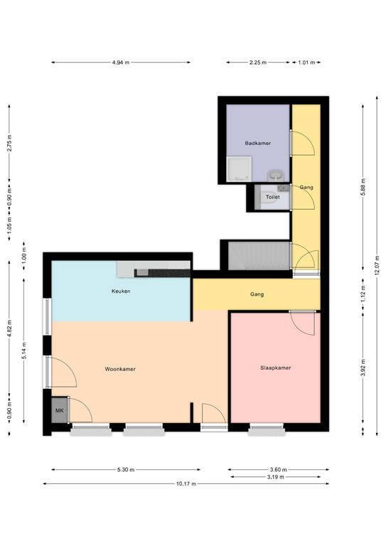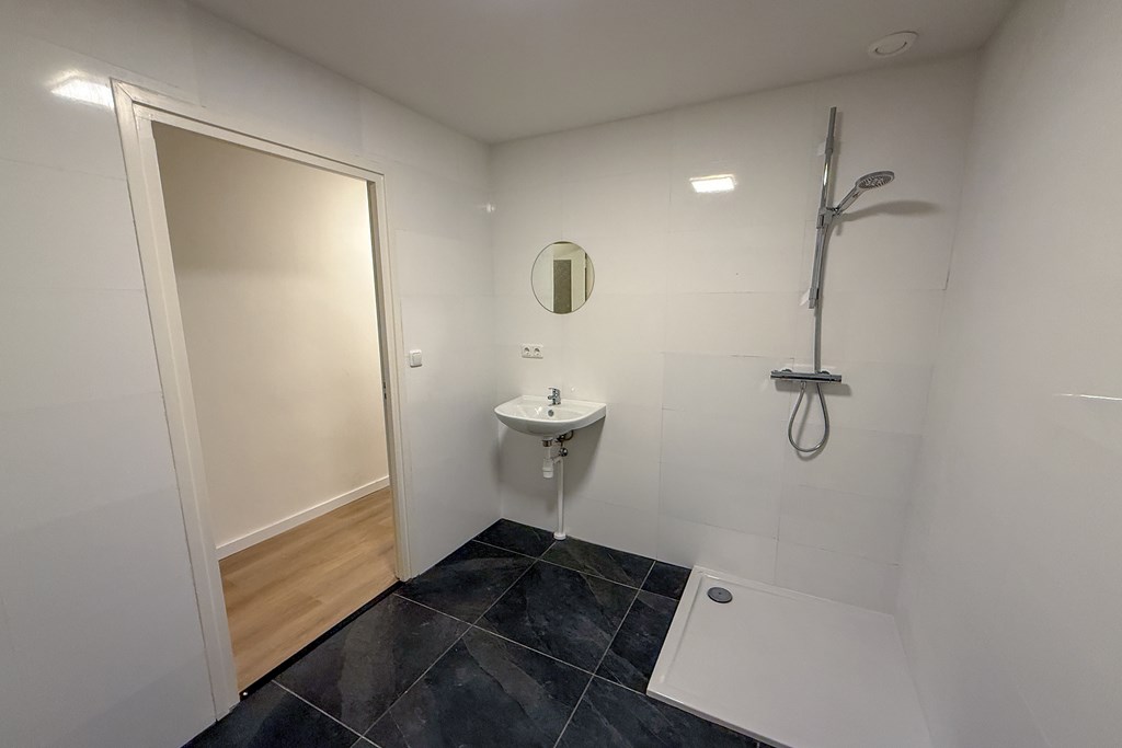 toegankelijk. De badkamer is compleet ingericht met een inloopdouche, wastafel