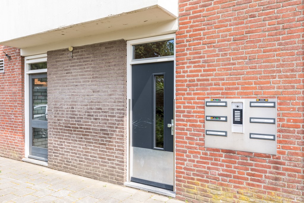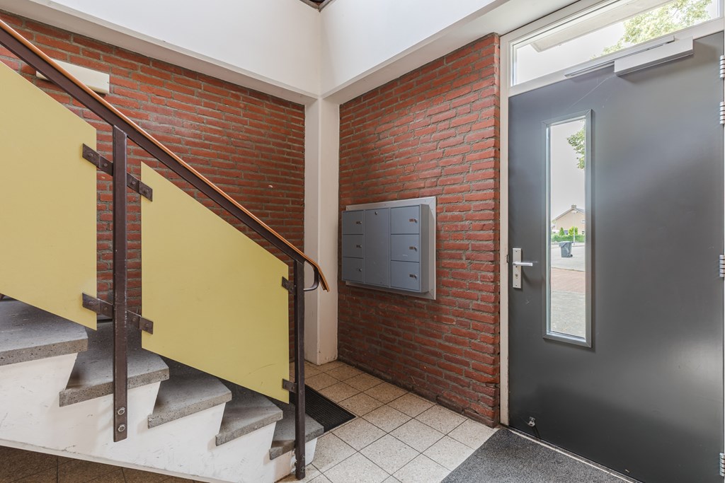 Bij binnenkomst in het complex vind je een gezamenlijke fietsenberging en de trapopgang naar de eerste verdieping.