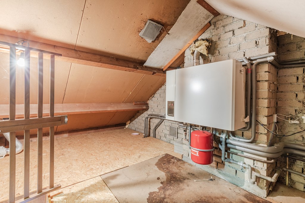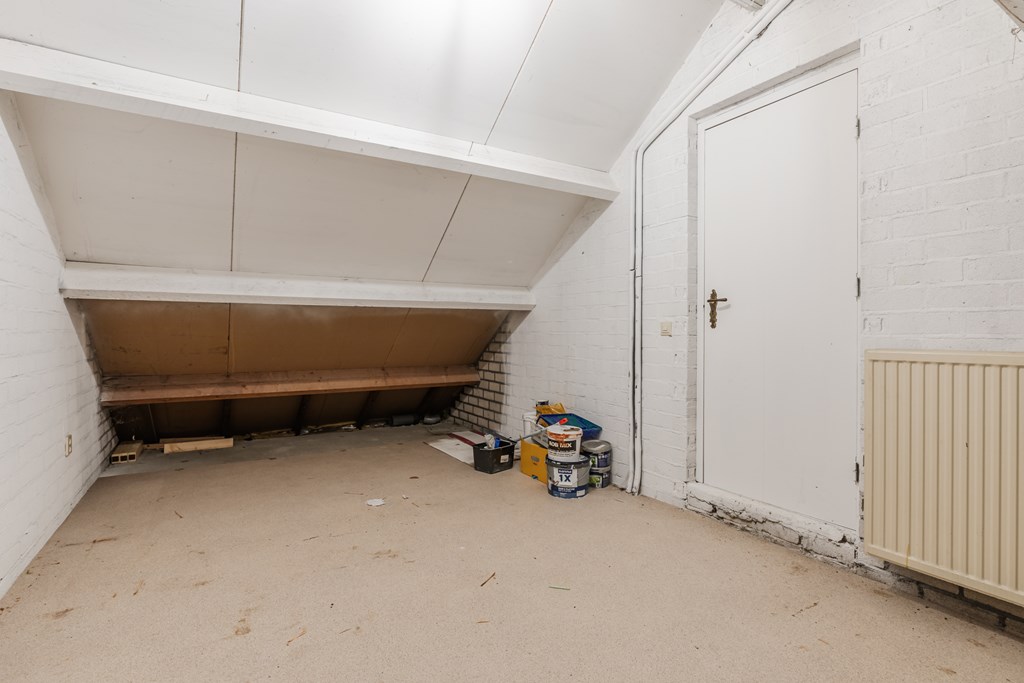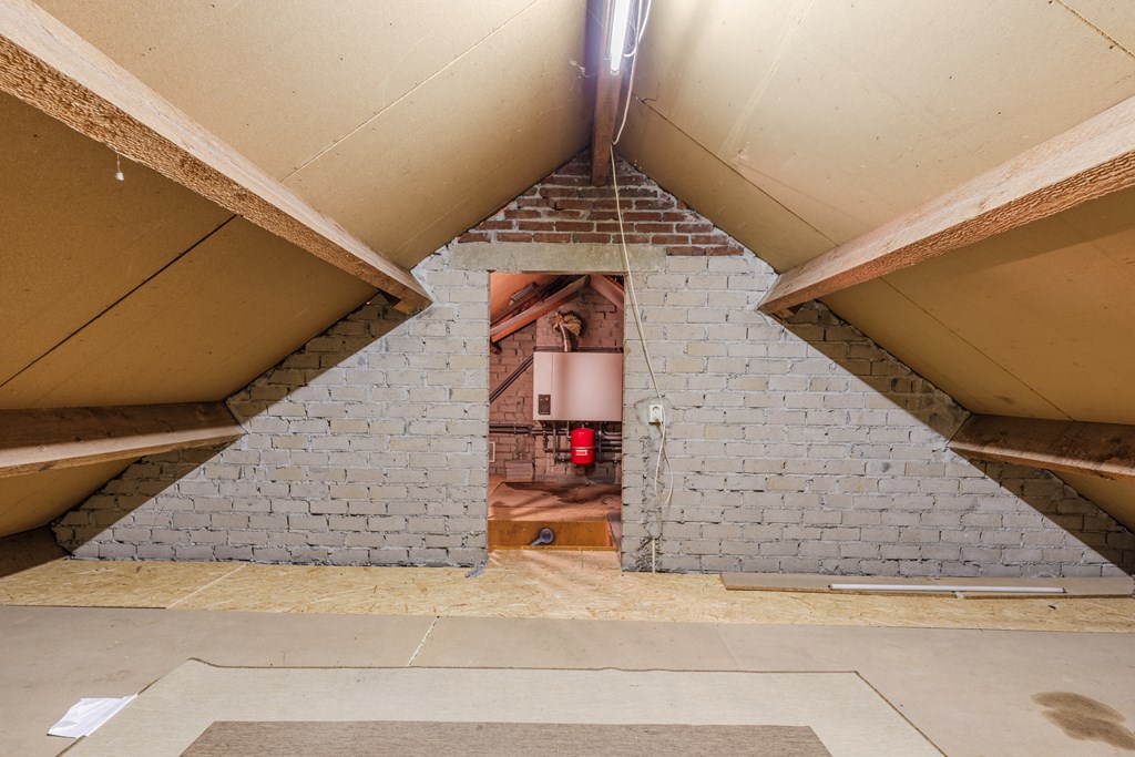 Via een vlizotrap te bereiken zolderberging (14 m²). Hier bevindt zich ook de opstelling van de c.v.-ketel.