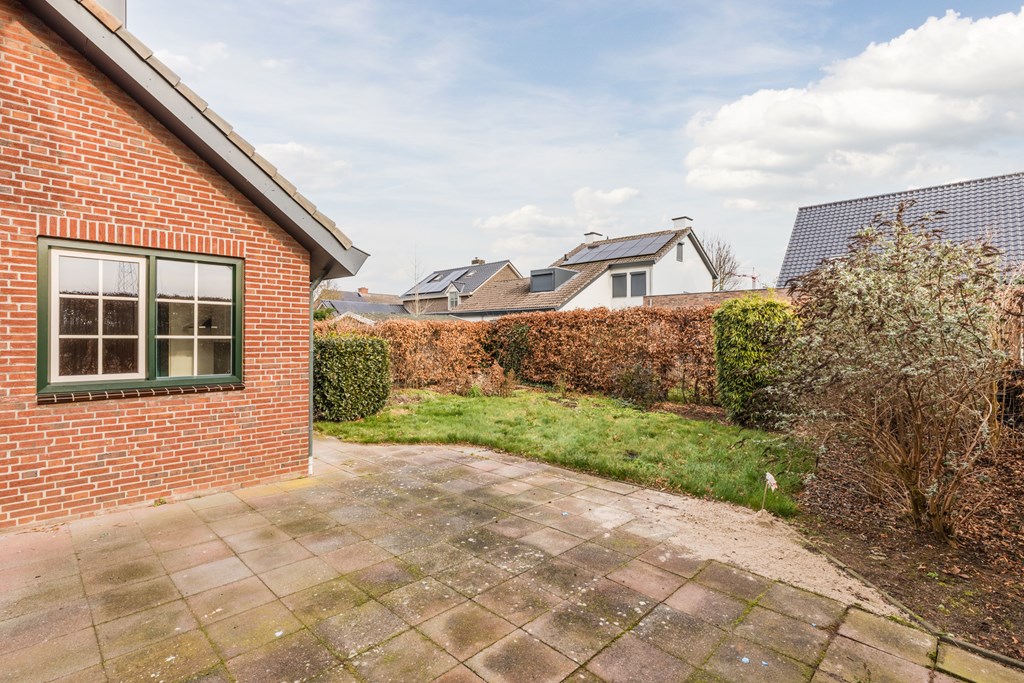 De achtertuin is gunstig gelegen op het zuidoosten, is achterom/opzij bereikbaar en biedt veel privacy.
