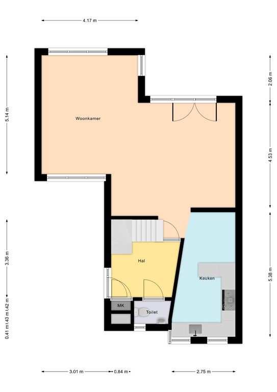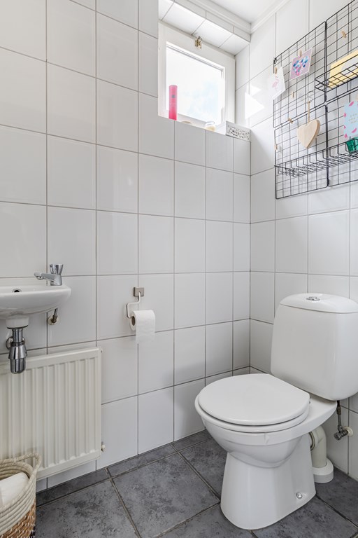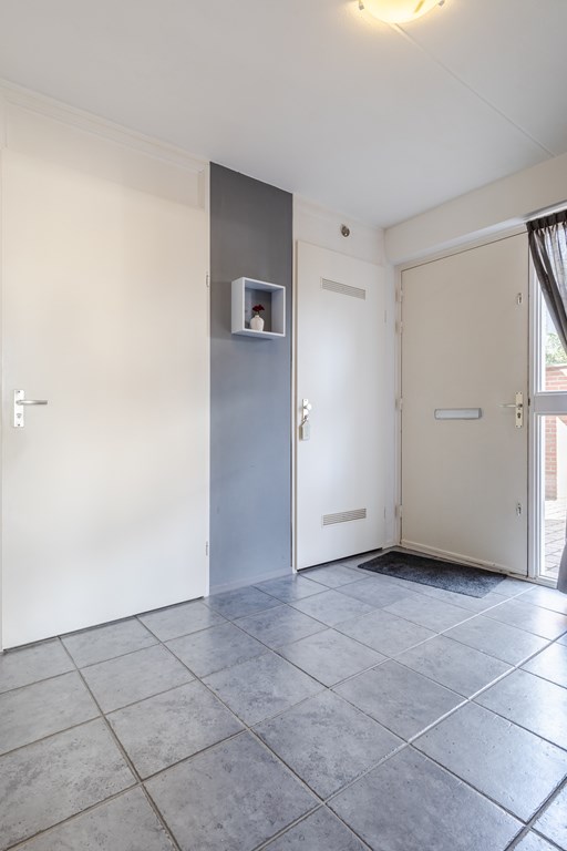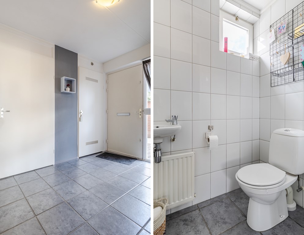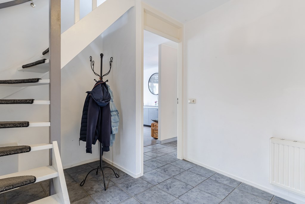 De ruime entreehal (ca. 9 m²) met modern toilet en vernieuwde meterkast geeft toegang tot de woonkamer.