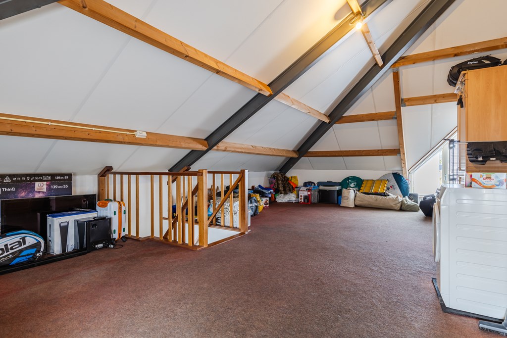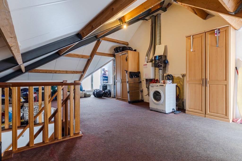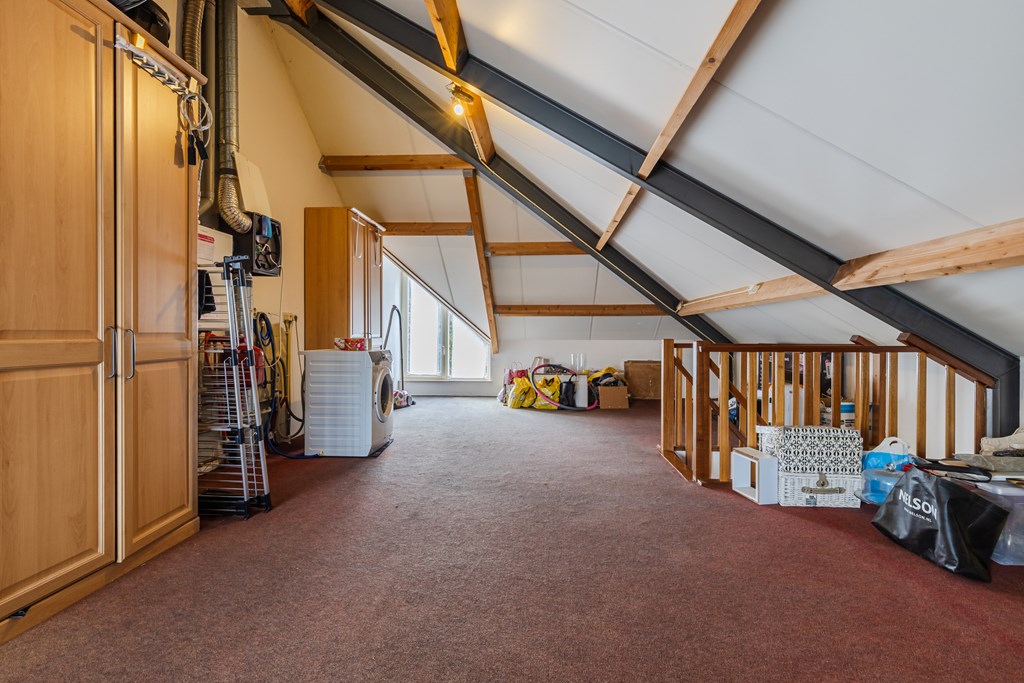 Via een vaste trap bereik je de royale zolder (ca. 30 m²). Dankzij de dakkapellen en de royale afmetingen is dit een volwaardige extra verdieping, perfect als vierde slaapkamer, werkruimte of hobbykamer.