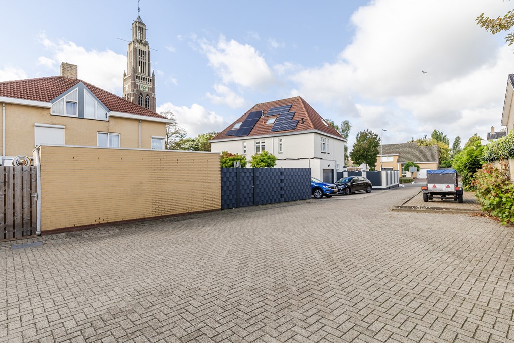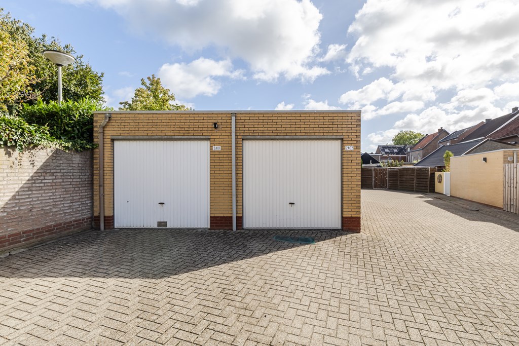 De vrijstaande garage (ca. 20 m²) is bereikbaar via een aangrenzend perceel aan de achterzijde. Aan de voorzijde van de woning is bovendien een oprit met parkeergelegenheid voor een extra auto.