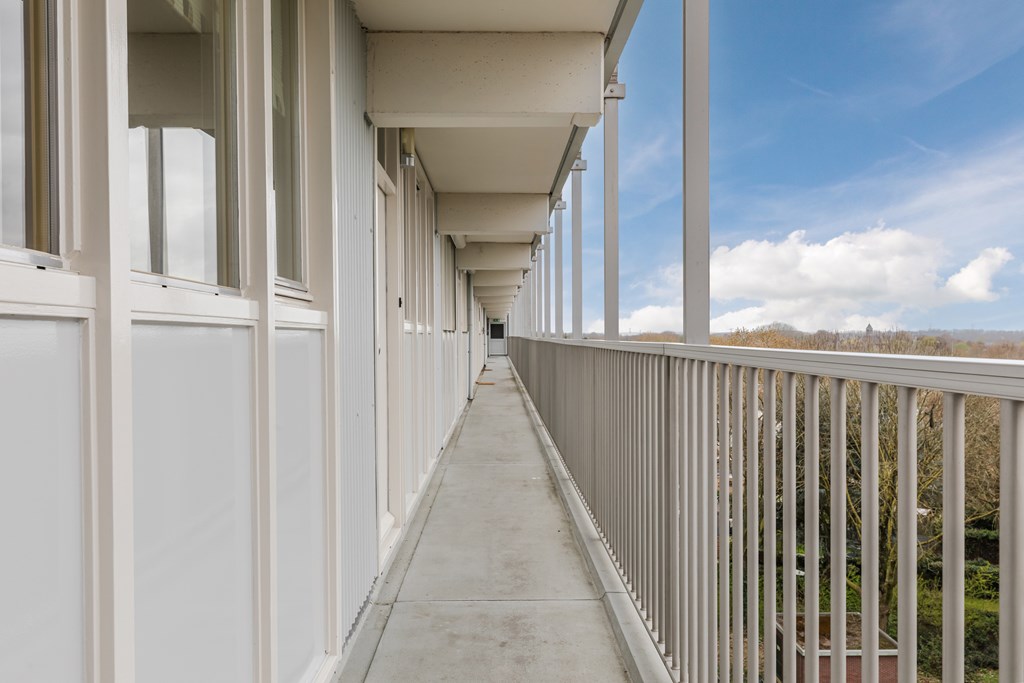 Via de galerij bereikt u de hal van het appartement met meterkast en intercom. De ruime woonkamer kenmerkt zich door de grote raampartijen, die zorgen voor een prettige lichtinval. Vanuit de woonkamer (26 m²) is het balkon bereikbaar. Vanaf het ruime balkon (ca. 10 m²), dat zonnig en gunstig is gelegen op het zuiden, heb je een mooi en fraai uitzicht over Sittard. De dichte, royale keuken (12 m²) is eenvoudig ingericht.