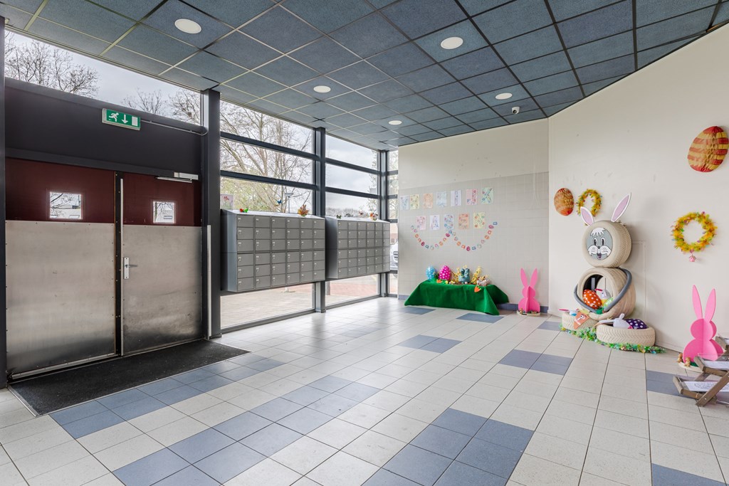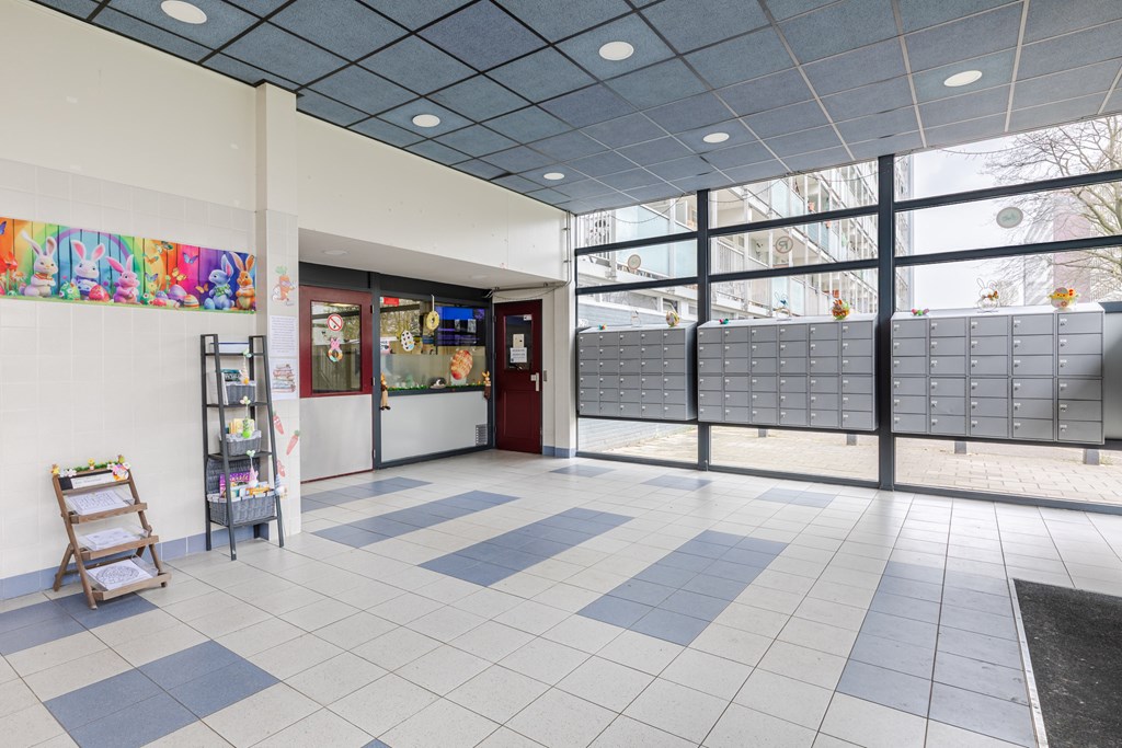 Centrale entree met brievenbussen, intercominstallatie, camerabewaking en twee liften. Vanuit hier is tevens de gezamenlijke fietsenstalling bereikbaar.