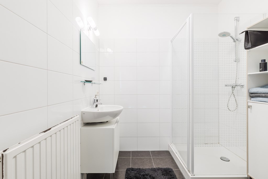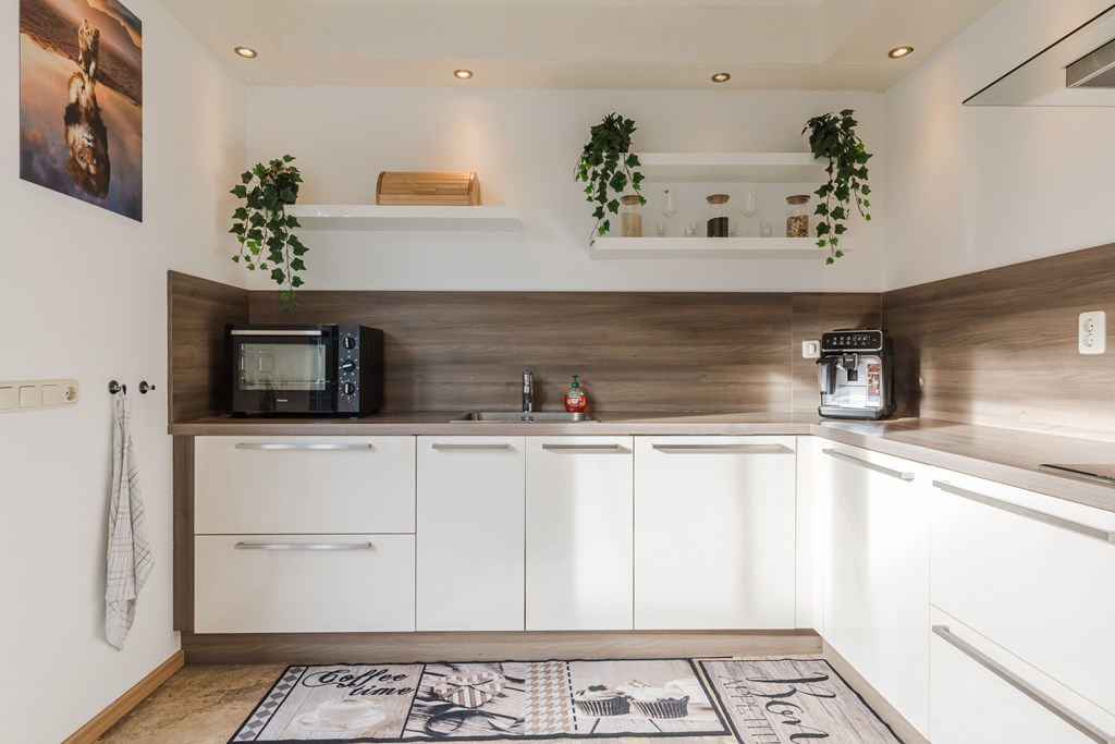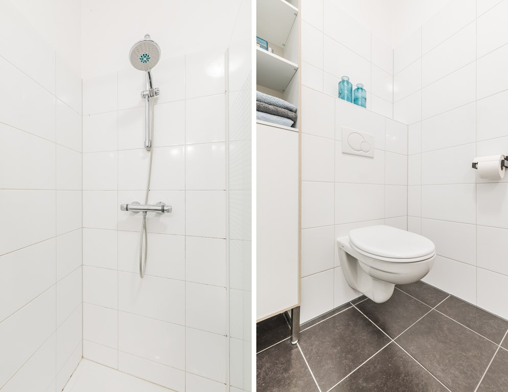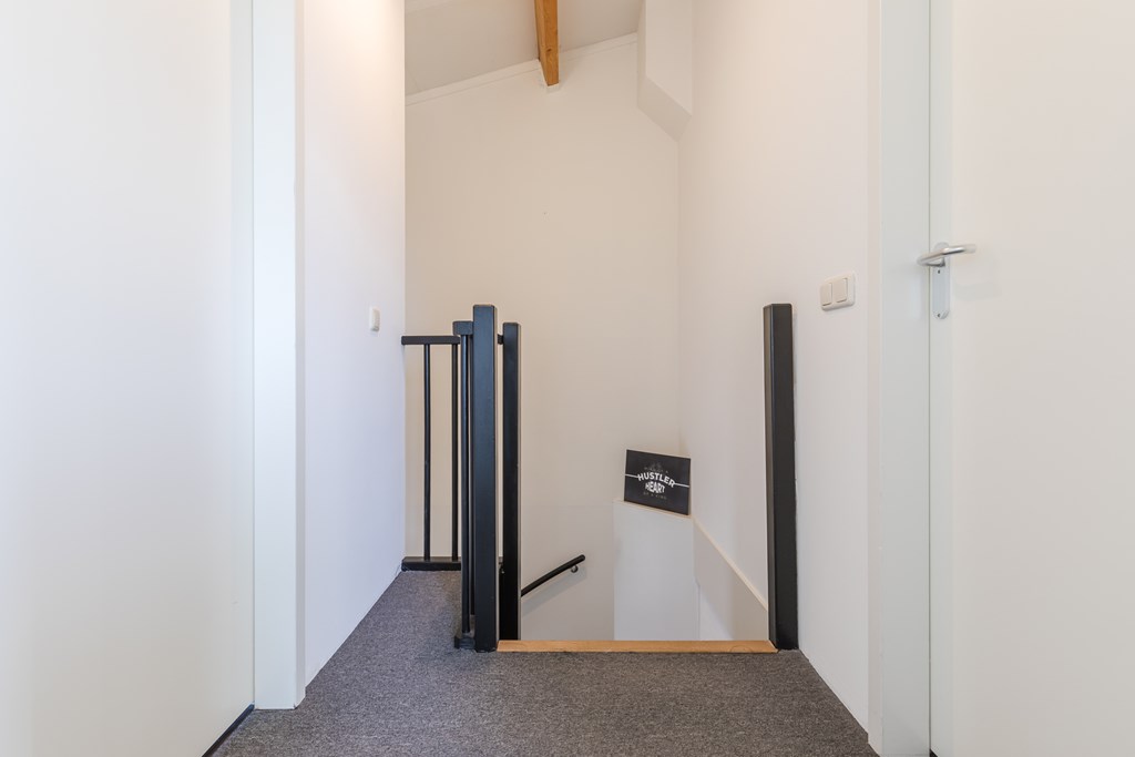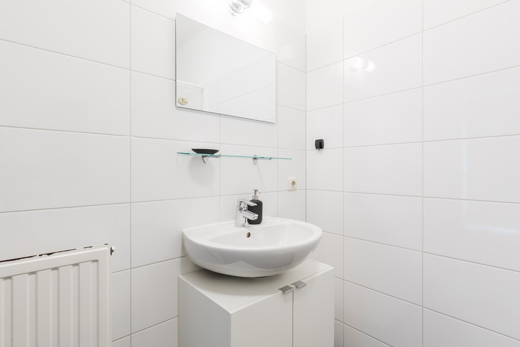 Hal (4 m²), zwevend toilet met fonteintje, sfeervolle living (37 m²) met een mooie tegelvoer, bestaande uit een woonkamer en open keuken met een moderne keukenopstelling v.v. een inductie kookplaat, afzuigkap en koelkast, ruime slaapkamer (13 m²) met laminaatvloer, badkamer (5 m²) met douche, wastafel en zwevend toilet, berging.