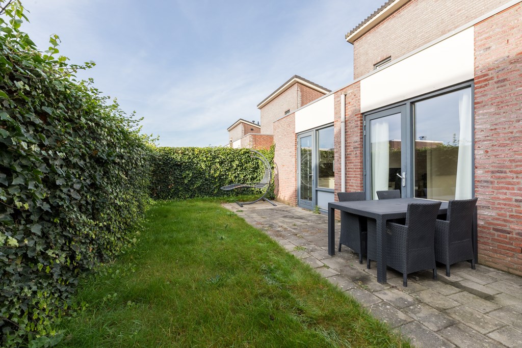 De besloten achtertuin is gunstig gelegen op het zuid-westen en beschikt over veel privacy.