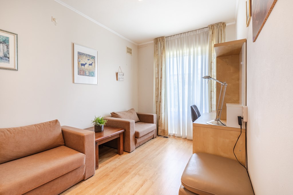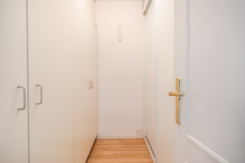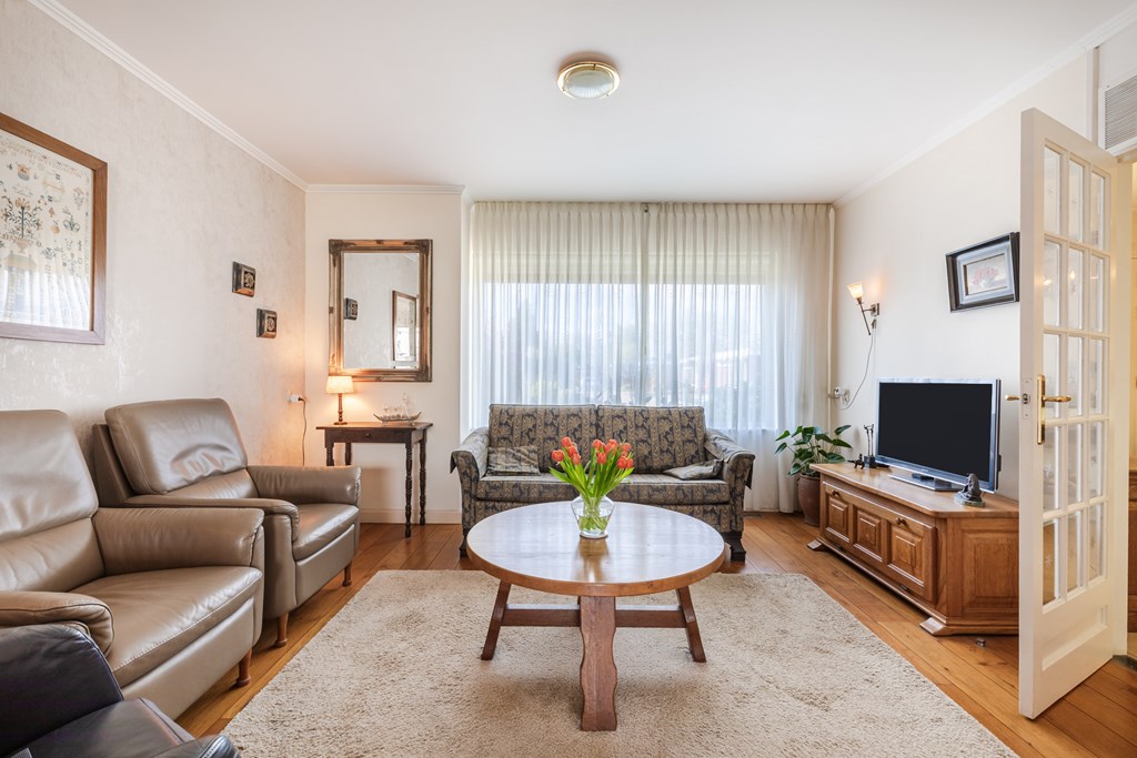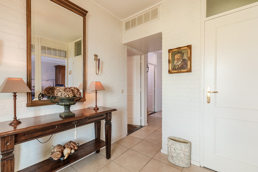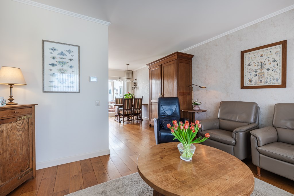 Hal (10 m²) met tegelvloer, toilet met fonteintje, gang, royale en lichte woonkamer (31 m²) met een eiken parketvloer en toegang middels een