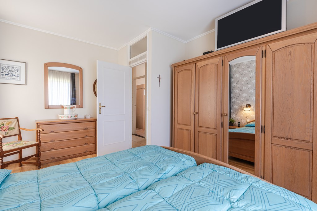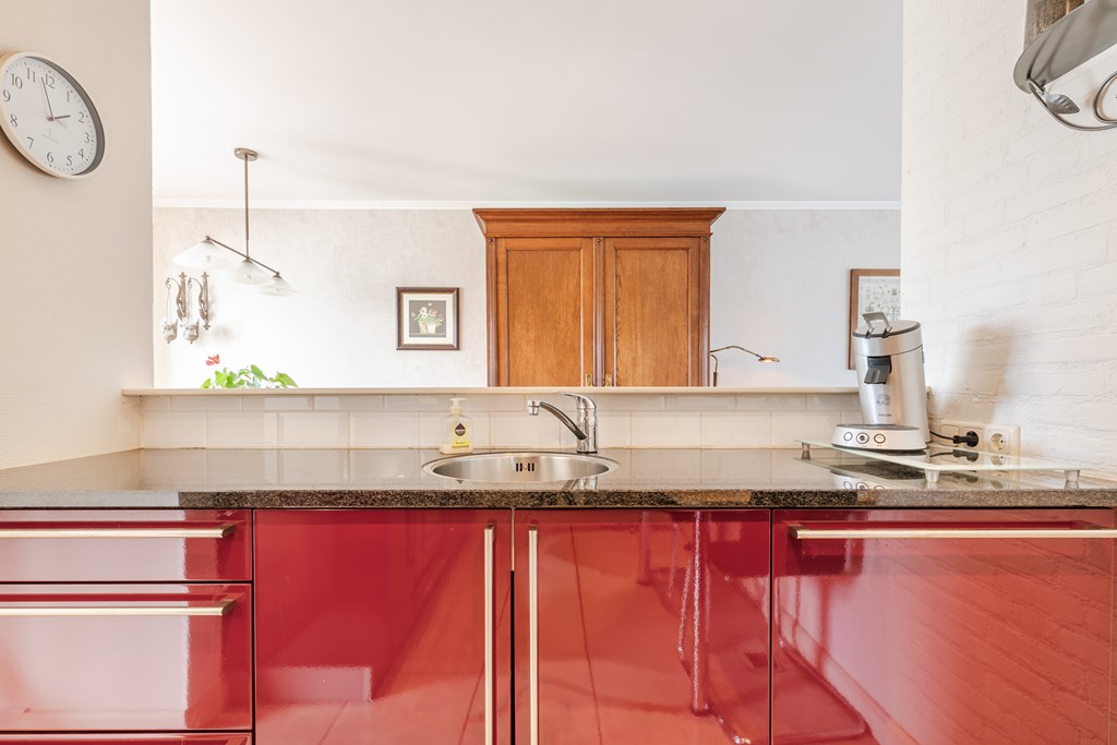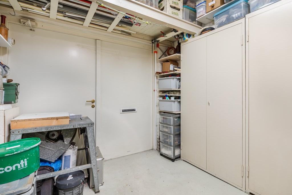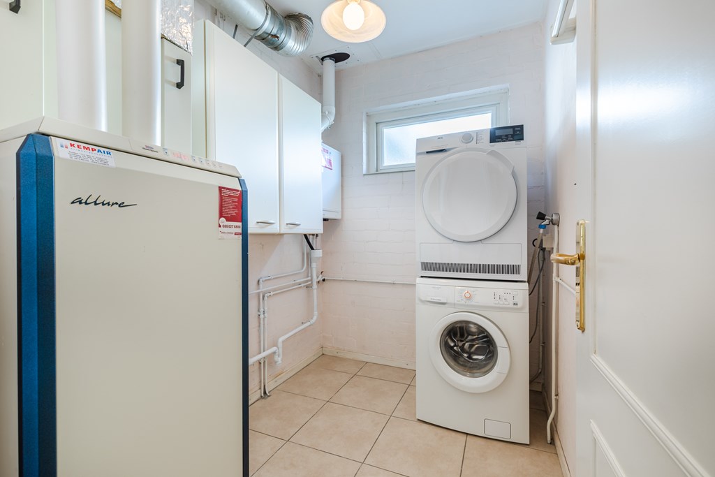 keuken v.v. een gaskookplaat, afzuigkap, oven, koelkast, vaatwasser en een granieten aanrechtblad, praktische bijkeuken (7 m²) met keukenblok, wasruimte (5 m²) met aansluiting voor witgoed, berging (10 m²), 2 ruime slaapkamers (16 m² en 11 m²), garderobekamer (5 m²) met inbouwkasten, badkamer (6 m²) met inloopdouche, wastafel met meubel en toilet.