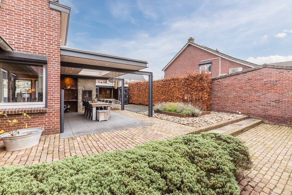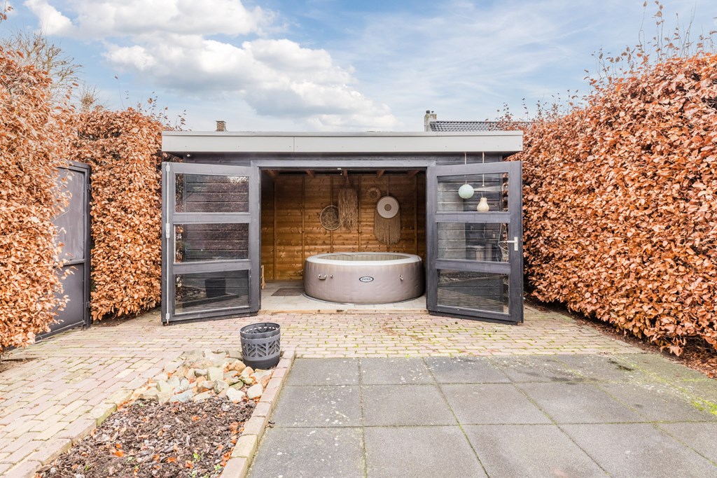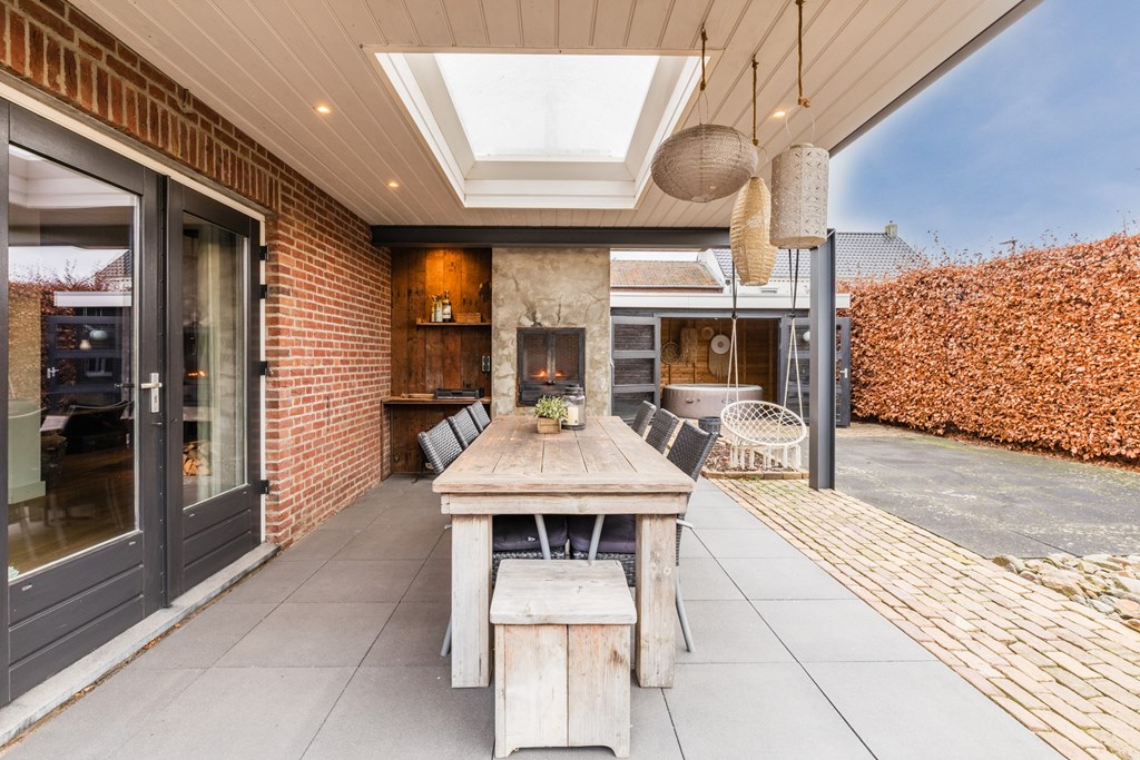 De fraai aangelegde achtertuin is zonnig gelegen op het zuidoosten en biedt volop privacy. Met twee sfeervolle overkappingen, een tuinhuis en meerdere zitplekken is dit een heerlijke plek om te ontspannen na een werkdag.