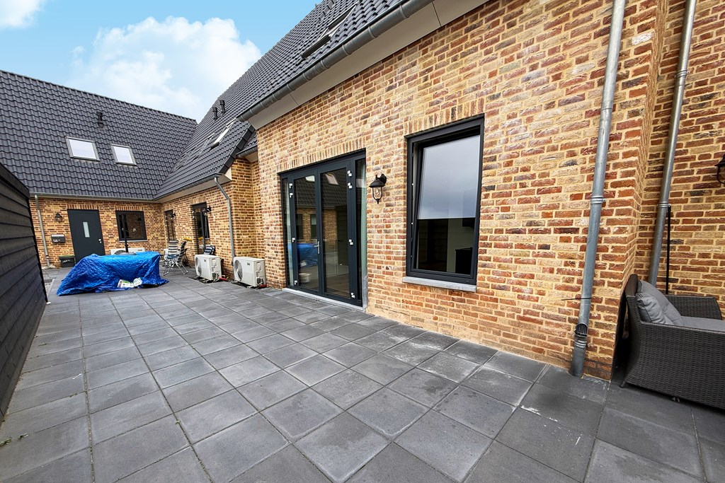 Binnen ervaar je direct de frisse, lichte uitstraling en de fijne indeling. Grote raampartijen zorgen voor een overvloed aan daglicht en creëren een warme sfeer. De open verbinding tussen keuken en woonkamer maakt dit tot een echte leefruimte, waar koken, eten en ontspannen samenkomen. Vanuit de keuken stap je zo het terras op: een heerlijke plek om te genieten van de zon of gezellig te borrelen.