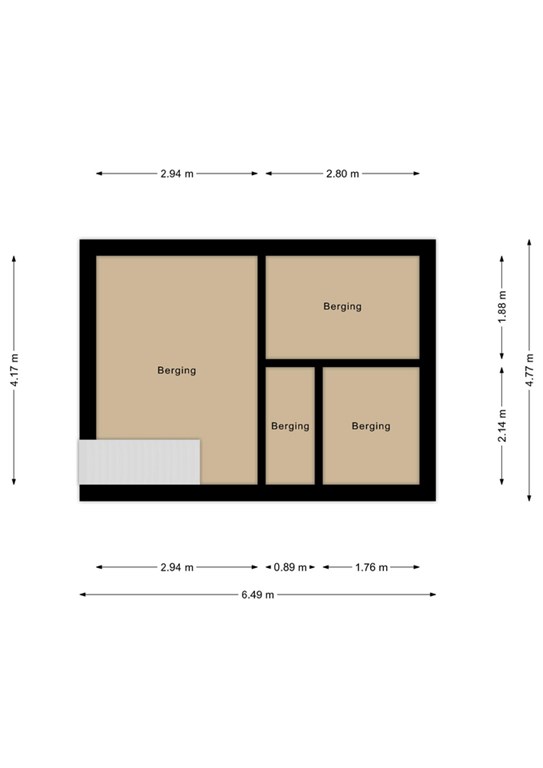 Vier praktische kelderbergingen (ca. 2 m², 4 m², 5 m² en 10 m²). Ideaal voor provisie, opslag of hobbyruimte.