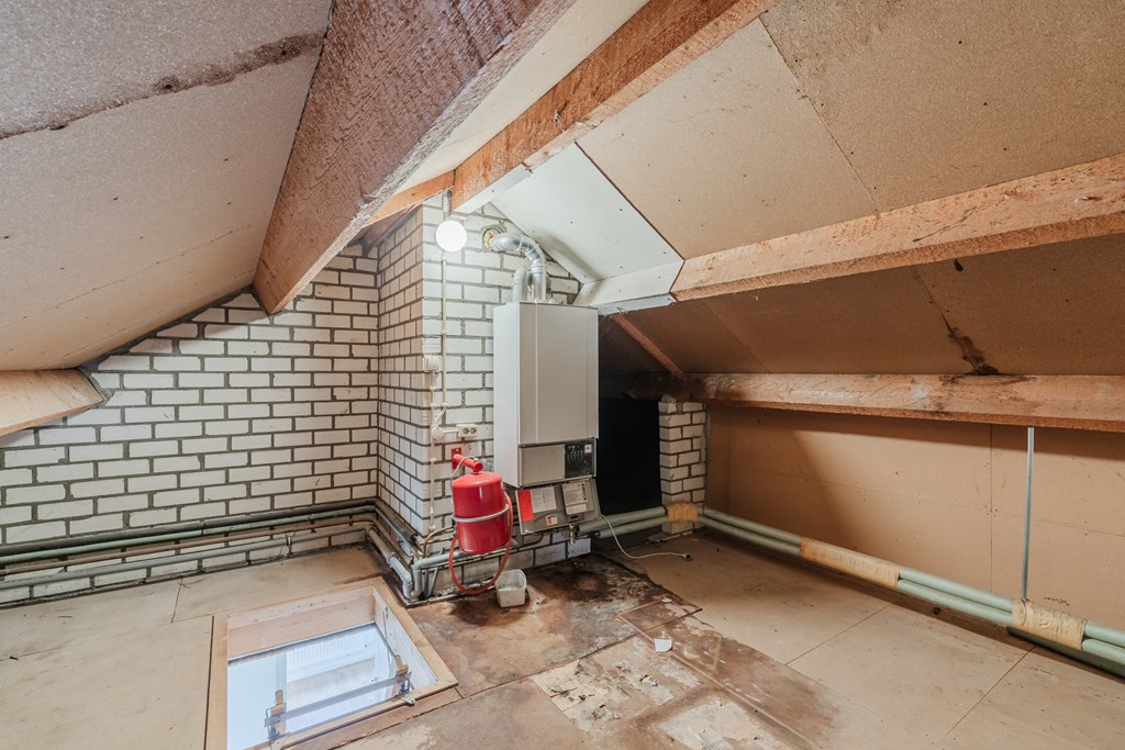 De zolder (17 m²) is bereikbaar via een vlizotrap en biedt mogelijkheden voor extra bergruimte en is de standplaats voor de c.v.-installatie.