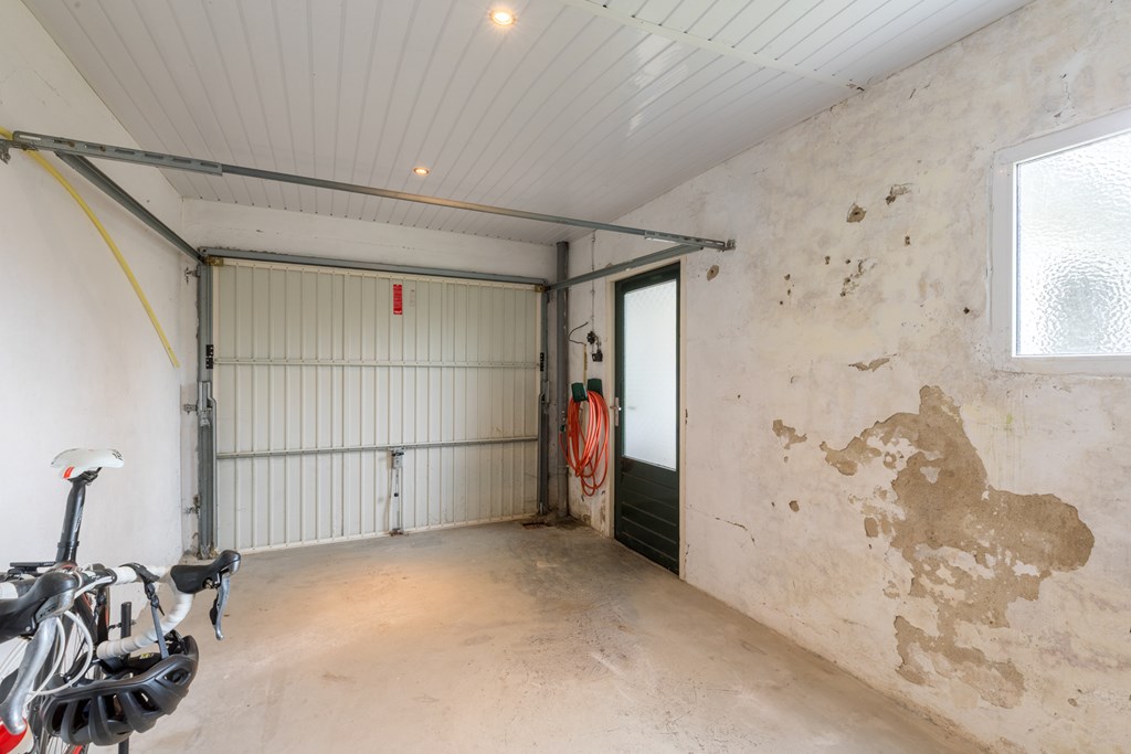 Daarnaast is er volop bergruimte dankzij de garage (16 m²) met plaats voor één auto, voorzien van elektra en wateraansluiting. Achter de garage ligt een ruime werk-/hobbyruimte (11 m²), eveneens met elektra.