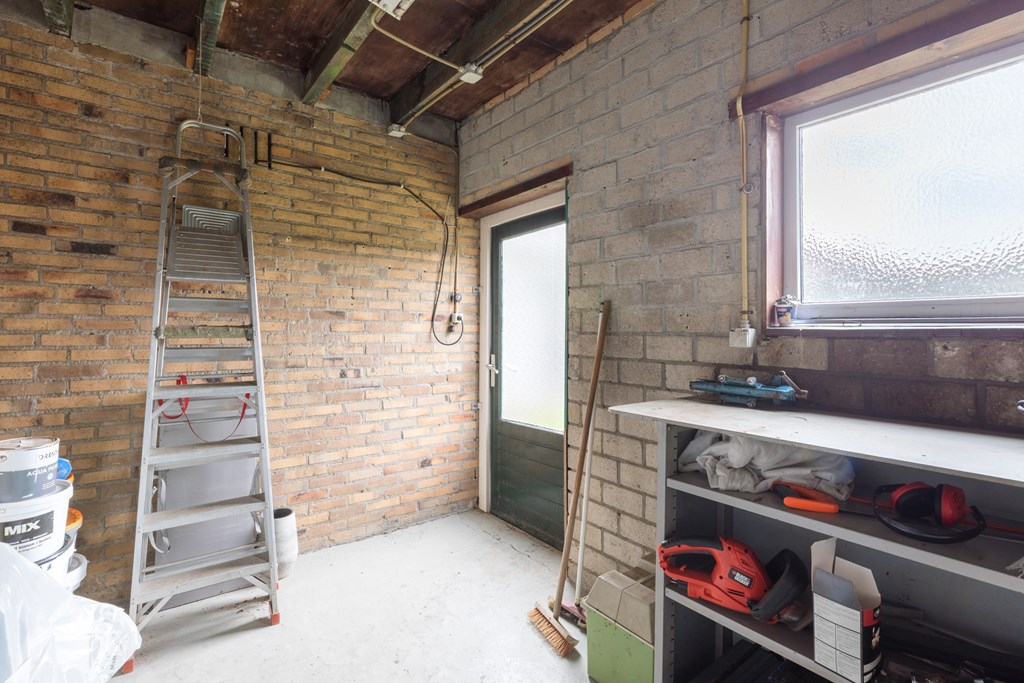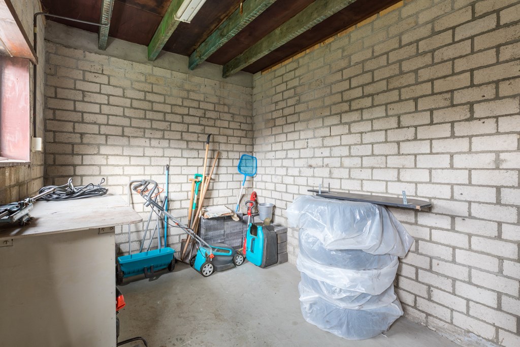 Vanuit de keuken is er toegang tot het souterrain (8 m²), ideaal als provisieruimte of wasruimte. Hier bevindt zich tevens de witgoedaansluiting.