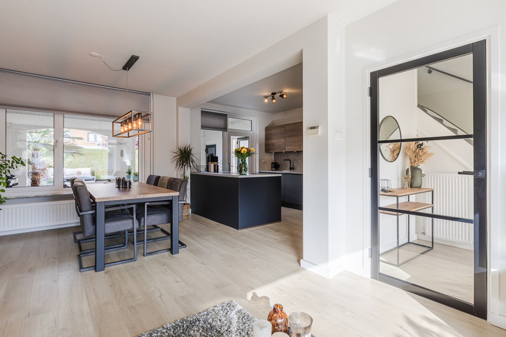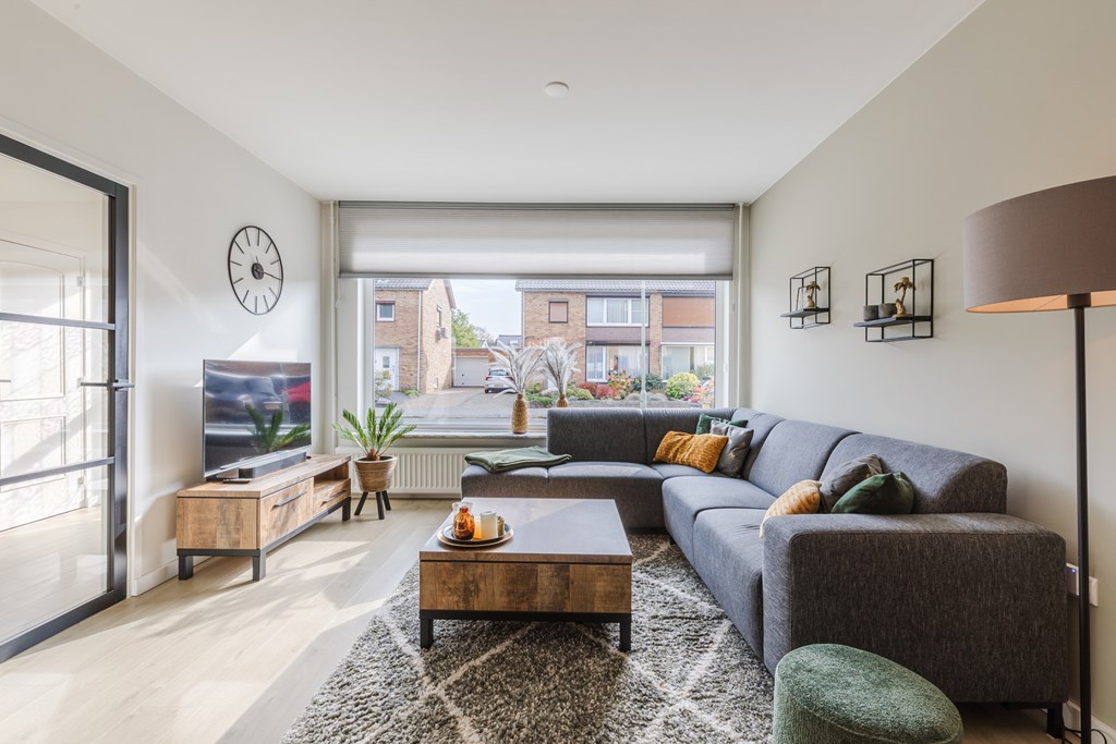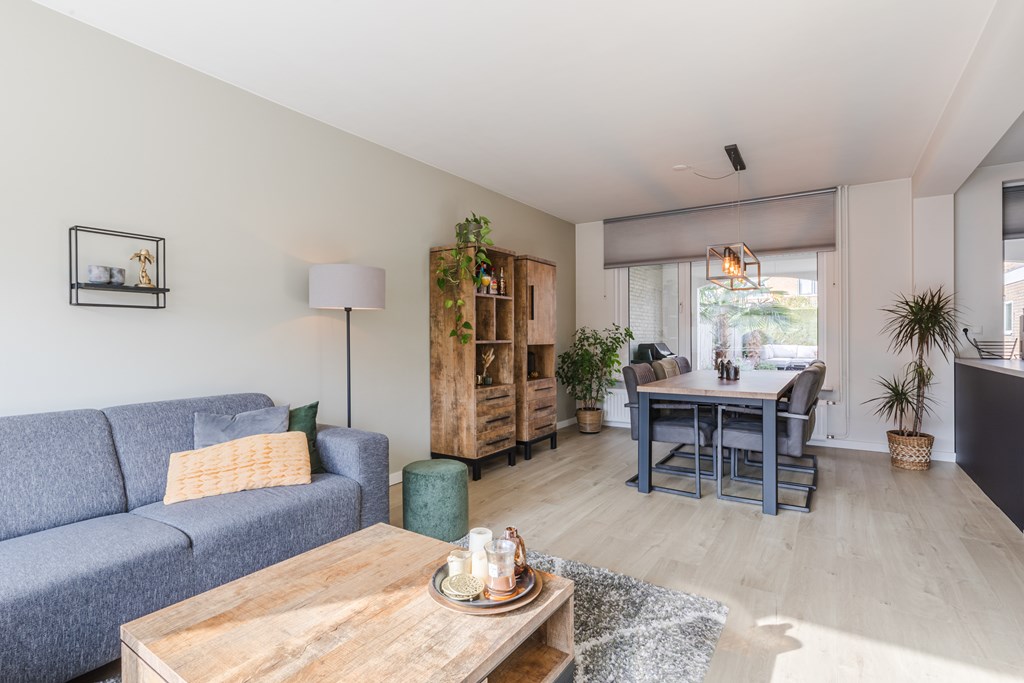De doorzonwoonkamer (26 m²) biedt veel natuurlijk licht en staat in open verbinding met de keuken.
