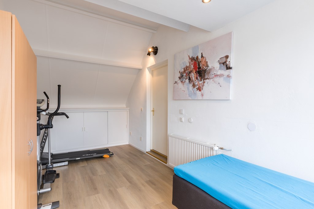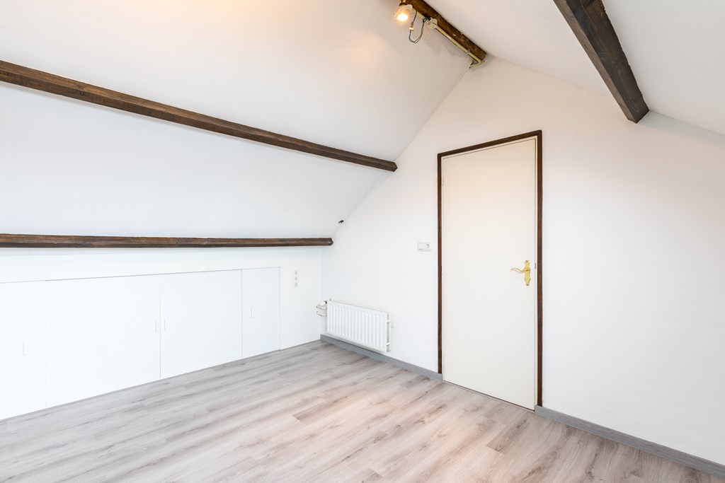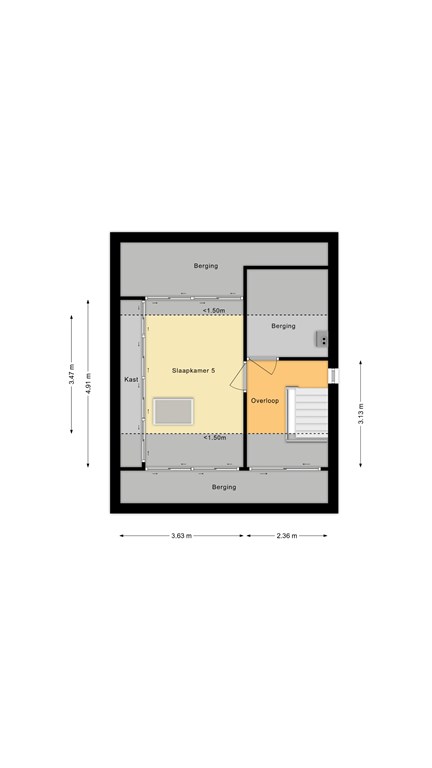 Overloop (4 m²), de vijfde slaapkamer (13 m²) en veel extra bergruimte.