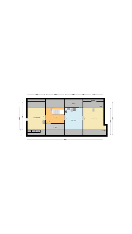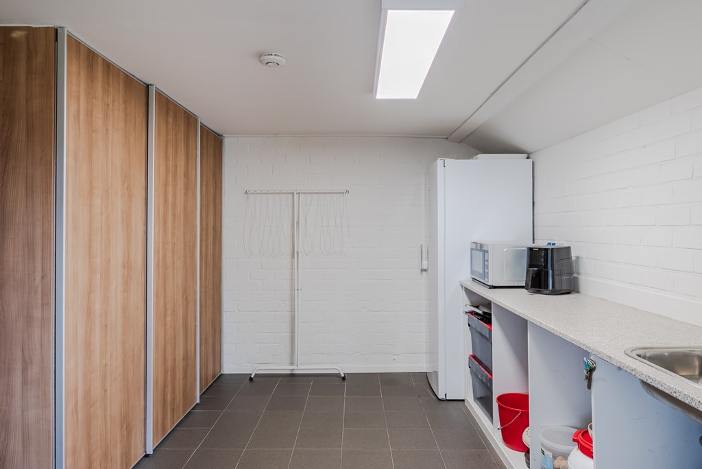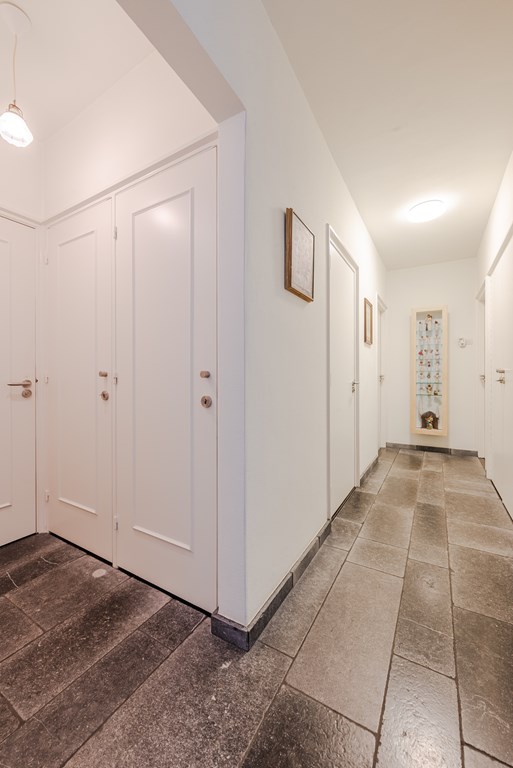 Ruime entree/hal (14 m²) met praktische indeling en veel vaste kastruimte. Vanuit de hal bereik je de gang (5 m²) die toegang biedt tot de verschillende vertrekken.