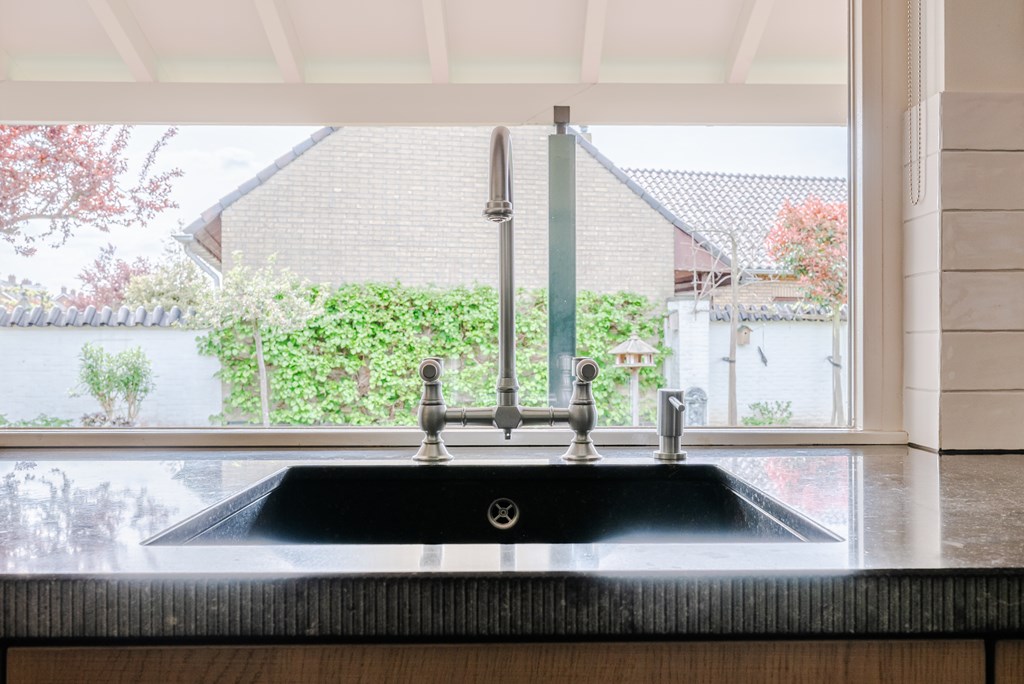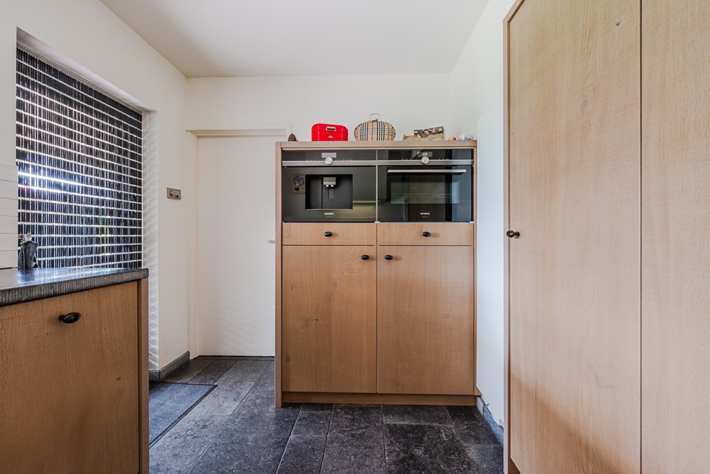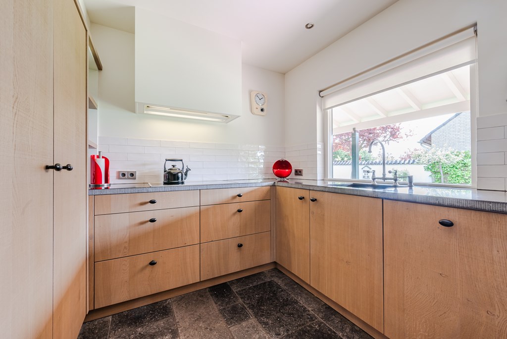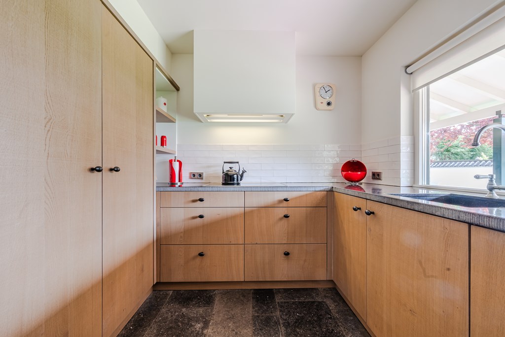 De keuken (9 m²) is modern uitgevoerd (2019) en voorzien van hoogwaardige inbouwapparatuur, waaronder een combi(stoom)oven, koffieautomaat, inductiekookplaat, vaatwasser en een granieten werkblad.