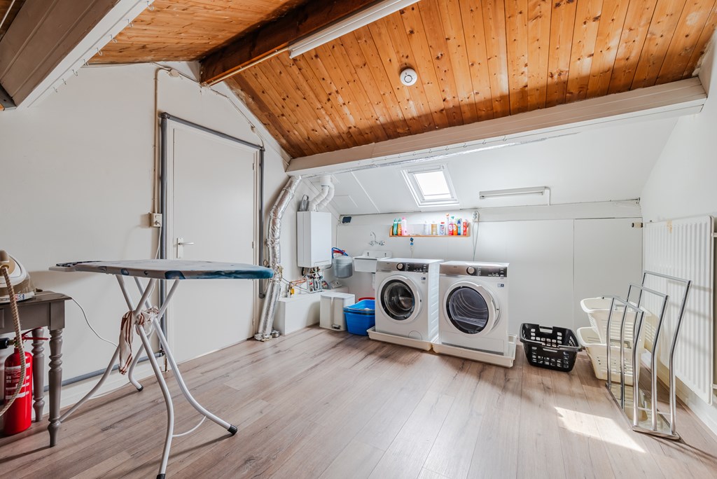 Hier bevinden zich nog twee slaapkamers (15 m² en 18 m²), waarvan één zeer ruim en voorzien van een wastafel. De overloop (11 m²) biedt toegang tot een praktische berging (4 m²) en een ruime wasruimte (15 m²). Dankzij de Velux dakramen (2025) is ook deze verdieping aangenaam licht.