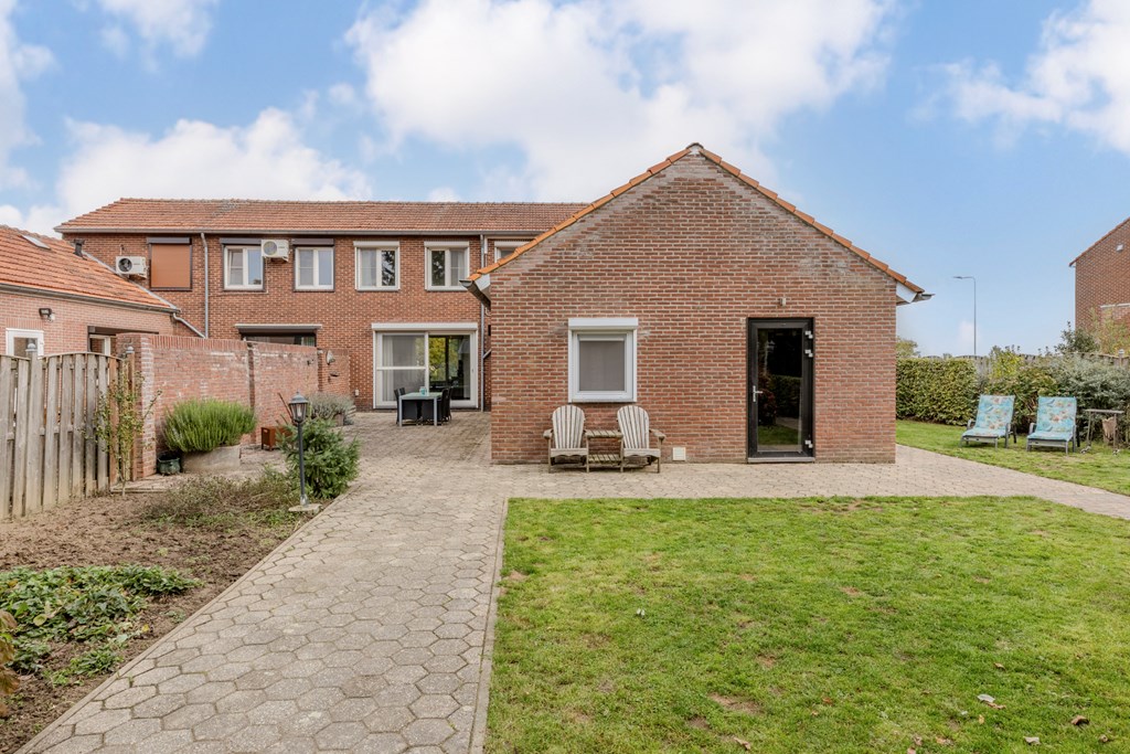 De royale achtertuin is gunstig gelegen op het zuid westen, beschikt over een achterom en een schoonmetselwerk tuinhuis met mooie overkapping en terras, ideaal voor fijne zomeravonden.